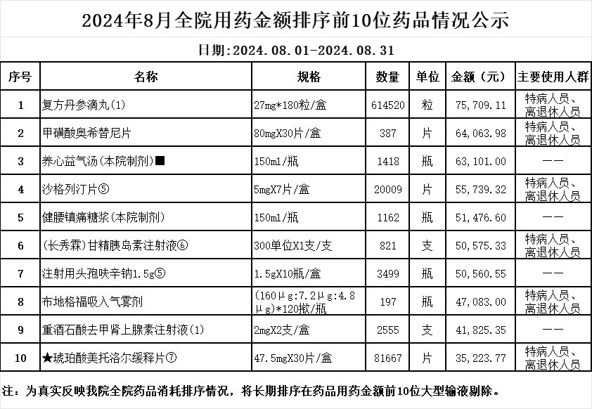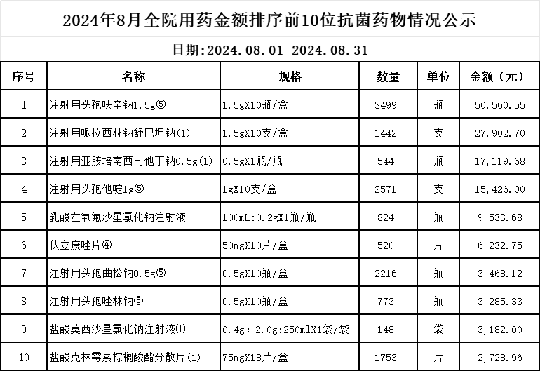 阳春市中医院阳光用药监控数据 (2024年8月)
