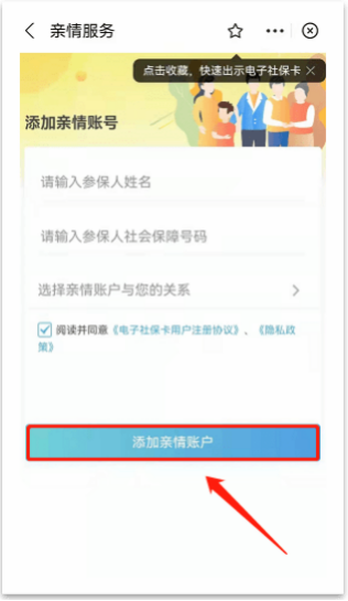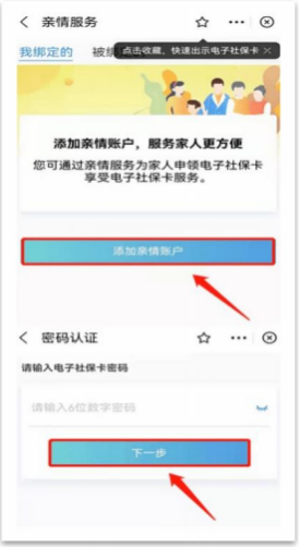 如何进行电子社保卡申领操作 方法一:通过微信小程序领取 微信APP 申领电子社保卡 第一步:打开“微信”APP,点击右上方“+”号,打开扫一扫,扫描下方二维码: 第二步:确认领取,输入相关信息,授权领取电子社保卡,进行人脸认证,领取电子社保卡签发成功。 方法二:通过支付宝领取 支付宝 APP 申领电子社保卡 第一步:登陆“支付宝”APP 点击右上方+号,打开“扫一扫”扫描下方二维码; 第二步:选择同意并领取。(注意:申领地选择阳江) 方法三:为老人和孩子申领可通过“亲情服务”功能操作,步骤如下: 第一步:本人电子社保卡申领成功后,页面下方选择“社保卡亲情服务”,点击“亲情服务”。 第三步:输入需要被绑定人的姓名、身份证号及两者之间的关系, 勾选“协议”后,点击“添加亲情账户”,即可完成。