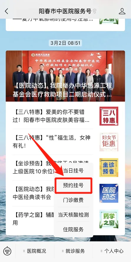 「坐诊时间」 3月9日(星期日) 上午8:30—11:30 「坐诊地点」 阳春市中医院中医长廊2号诊室 「咨询电话」 0662—7768791(客服中心) 13537981744(陈明仁) 「预约挂号」 关注微信公众号 “阳春市中医院服务号” 或长按以下二维码关注公众号 「具体流程」 进入公众号 ▼ 就诊服务—预约挂号 ▼ 选择科室 ▼ 选择就诊日期—选择就诊专家 ▼ 选择就诊时间段—选择就诊人 —确认挂号 专家简介
