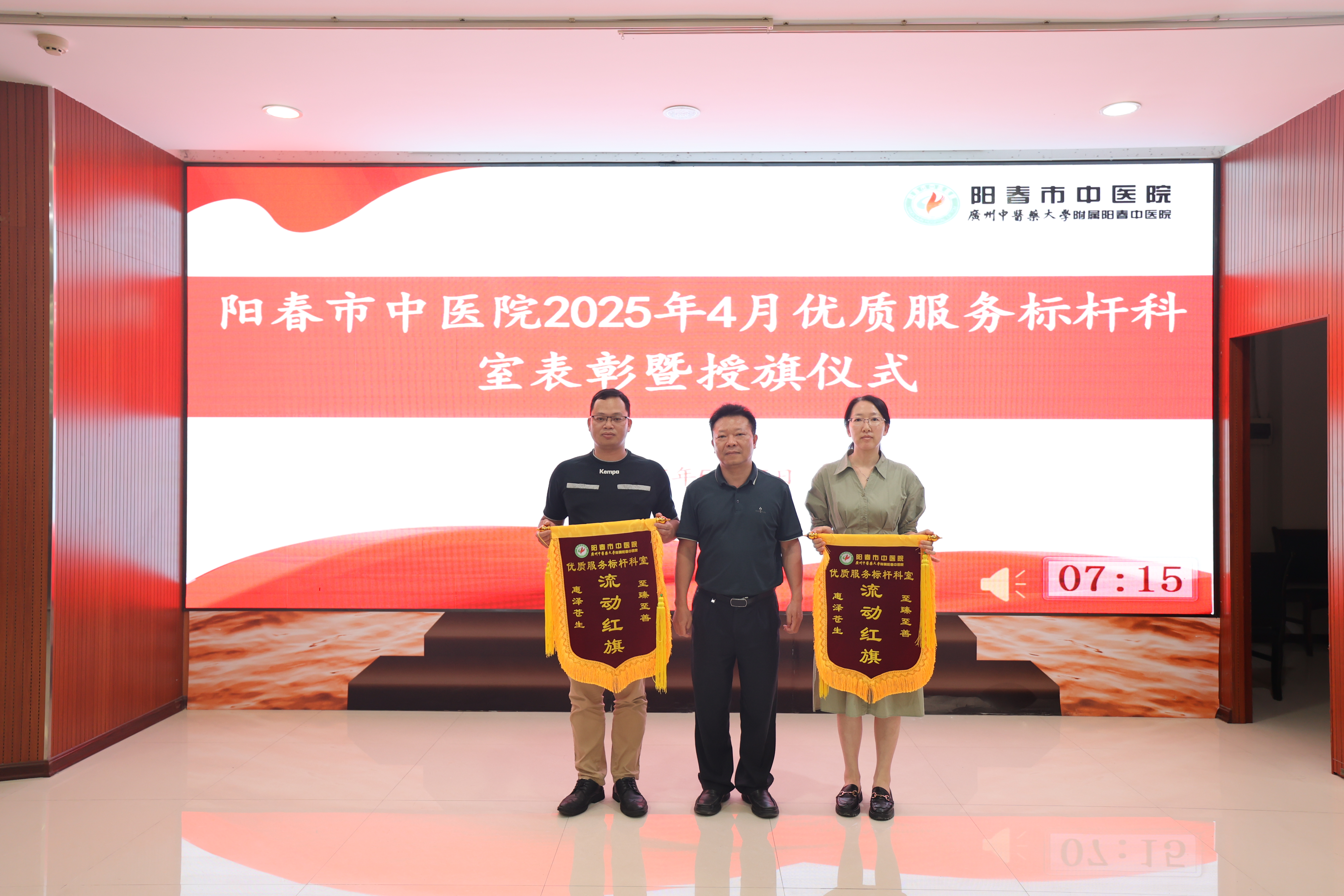 经过优质服务标杆科室评选领导小组严格考核,病理科、中医经典科·中医正骨科从多个科室中脱颖而出,获得2025年4月份“优质服务标杆科室”荣誉称号。院长朱家志为“优质服务标杆科室”授予流动红旗。