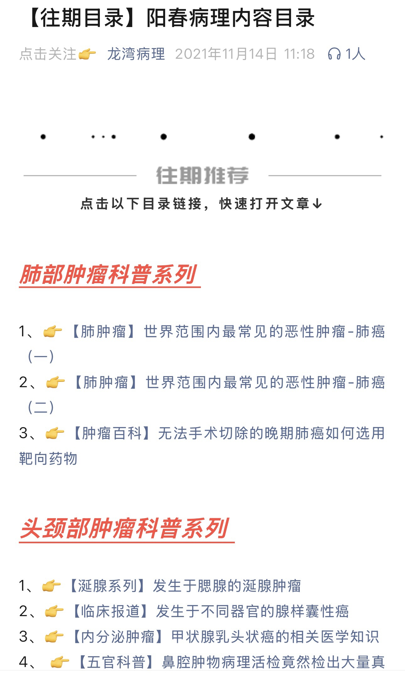(2)建立病理科普微信公众号,不定时发布疑难病例、特殊病例相关知识、并解答疑问,可供同行或有兴趣人员学习参考。