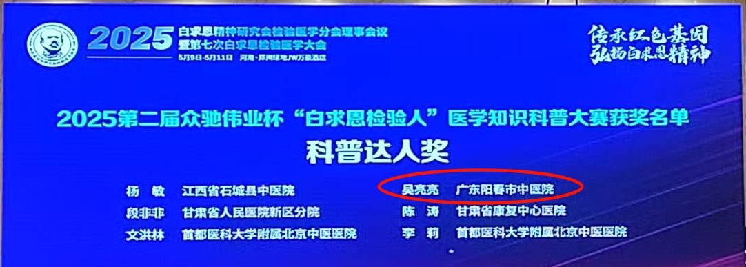 【喜报】我院吴亮亮在2025第二届众驰伟业杯“白求恩检验人”医学知识科普大赛荣获“科普达人奖”