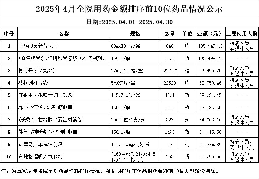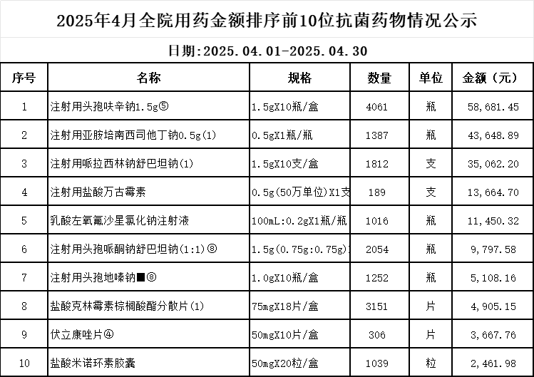 阳春市中医院阳光用药监控数据 (2025年4月)
