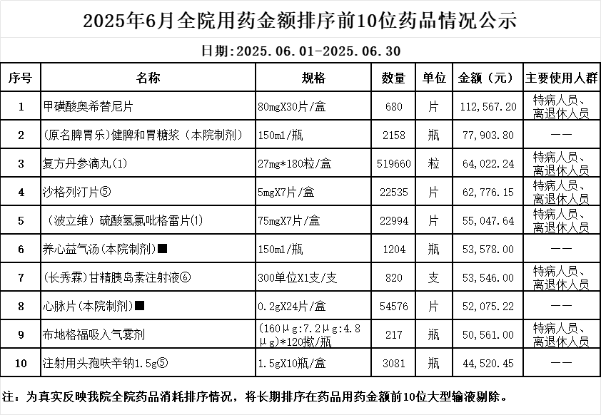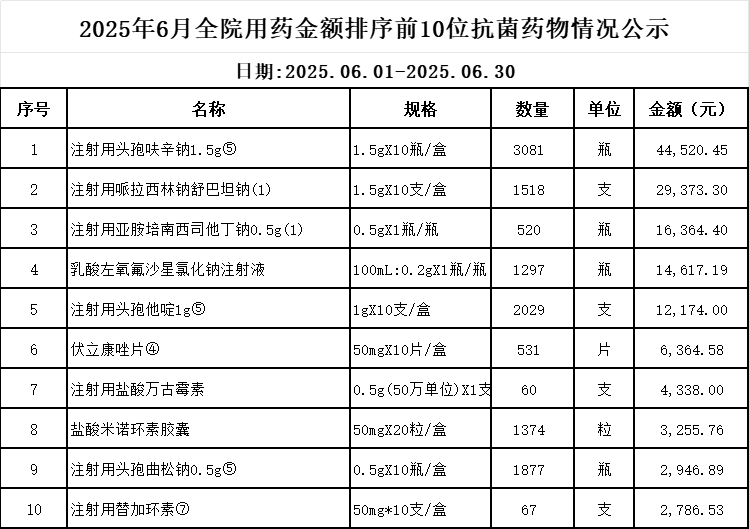 阳春市中医院阳光用药监控数据 (2025年6月)