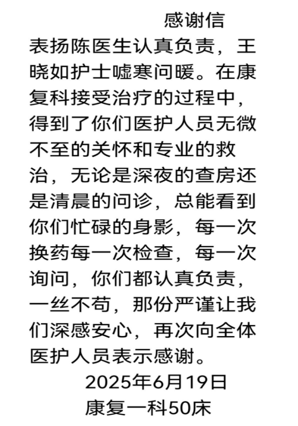 接下来,我院将不断推进服务品质提升,进一步强化优质服务意识,提升患者就医体验感,为推动医院高质量发展做出积极贡献。