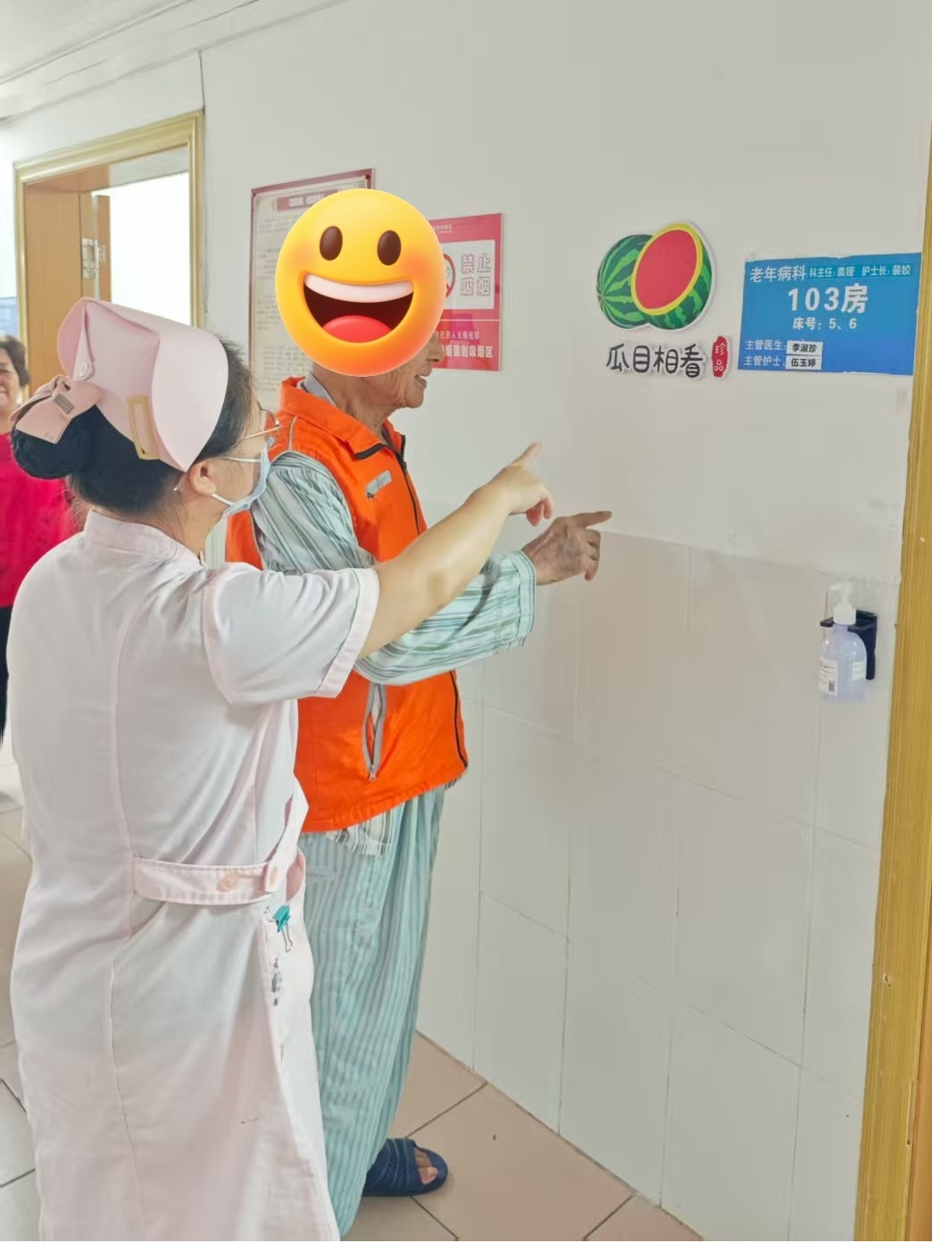 易爷爷摸了摸马甲的布料,喉结动了动:“嗯,我好好的穿着这件马甲”,在住院期间,护士们轮着班地惦记他:清醒时陪他说说话,糊涂了就顺着他的话说。小潘起身,扶他往病房走,“现在天还早,咱再睡会儿,天亮了,你家里的粥该熬好了,您不是爱喝的吗?”“易爷爷您还记得你的房间在哪吗”易爷爷没说话,只是任由我扶着,脚步比刚才稳了许多。“这是个大西瓜,爷爷,您的房间在这呢”易爷爷看了看笑了,回到床位时,他忽然低头,看着身上的防走失马甲,轻声说:“这衣裳……挺好。”