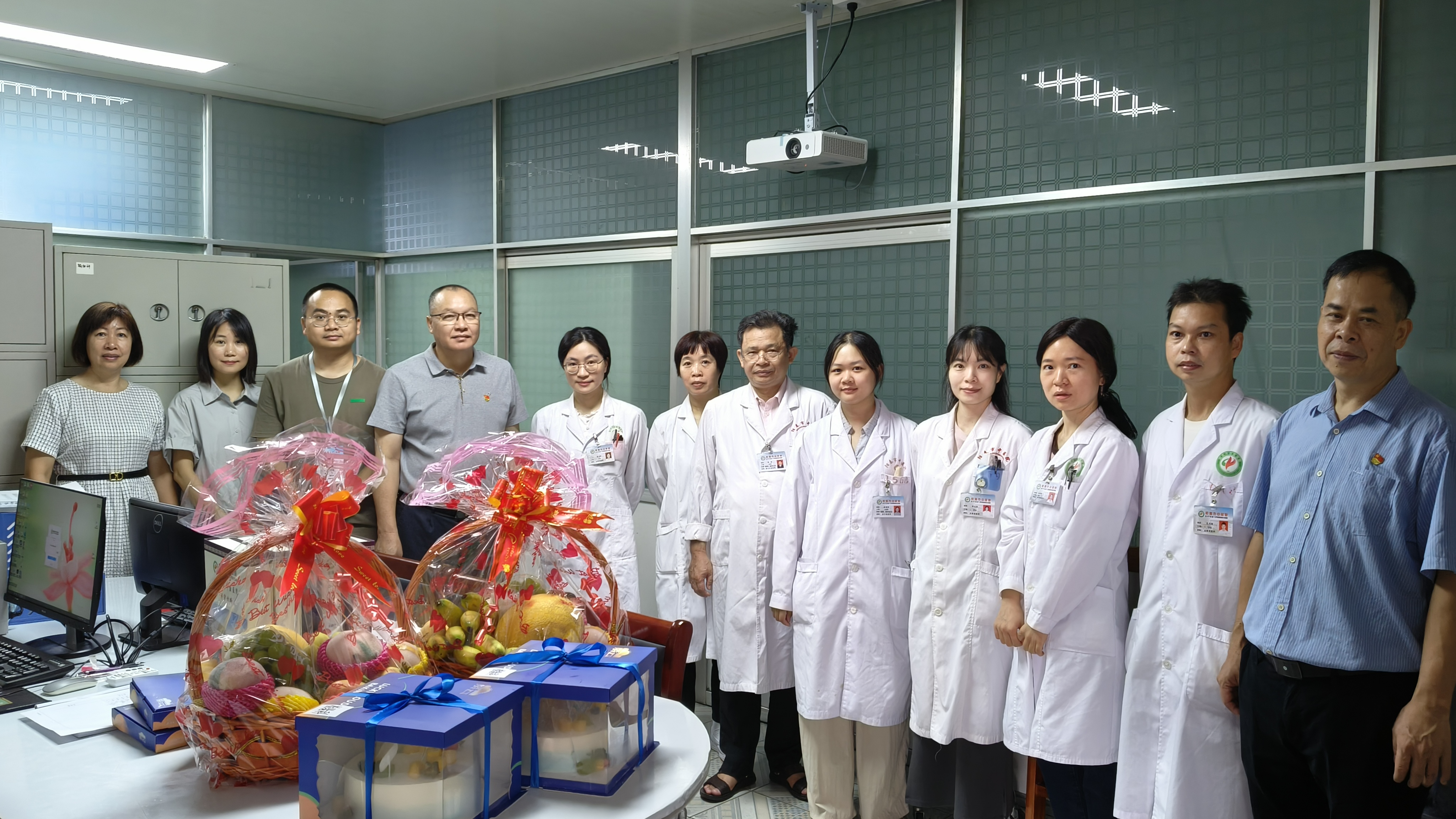 8月19日上午,为庆祝第八个“中国医师节”,我院党政领导班子成员走进各科室,向奋斗在临床一线的医师们送上水果以及蛋糕,并致以节日的问候与崇高的敬意。