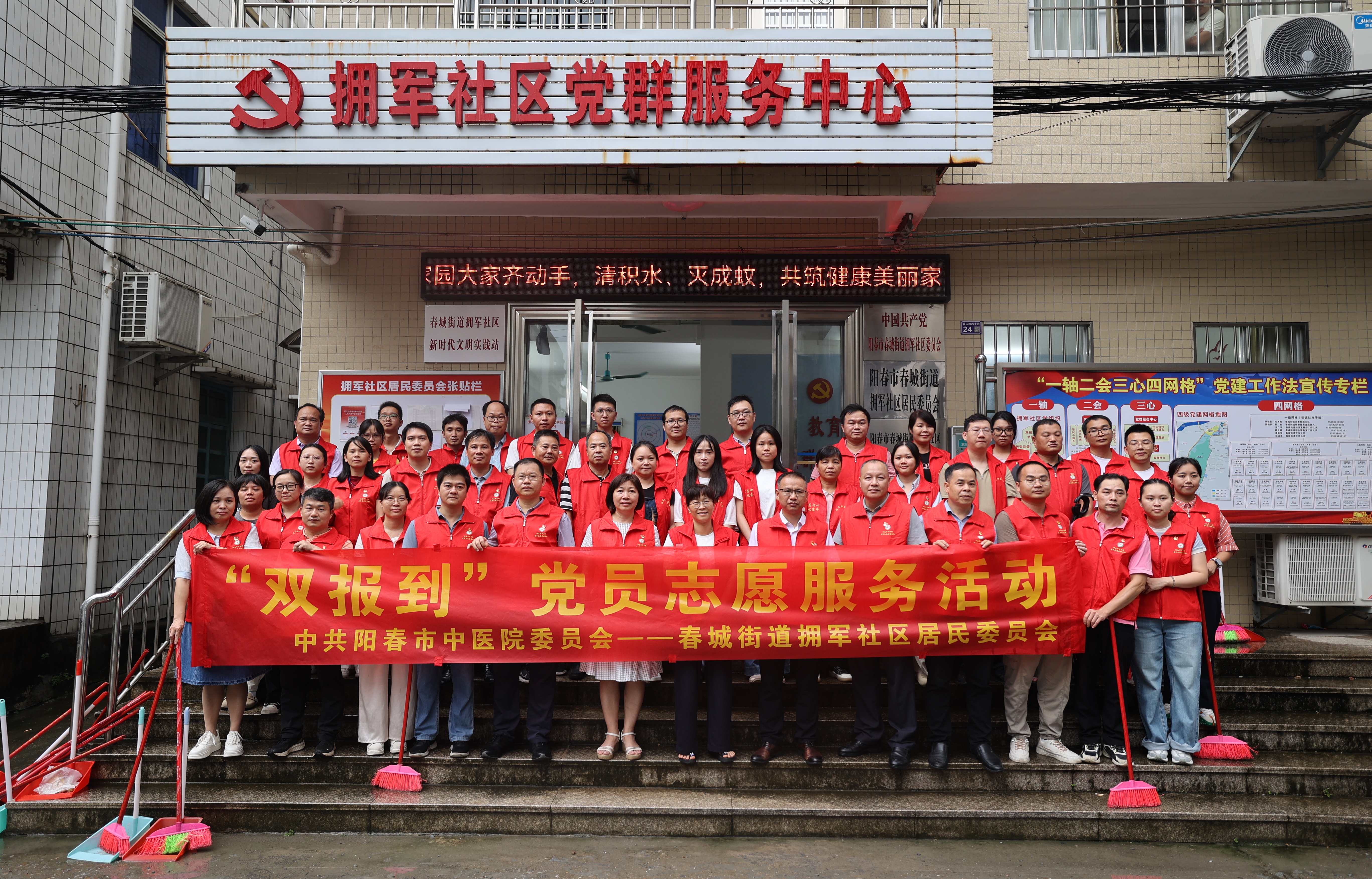 为全面落实上级关于基孔肯雅热等蚊媒传染病防控工作部署,进一步发挥基层党组织战斗堡垒作用和党员先锋模范作用,守护好人民群众健康安全。8月19-20日,我院党委携手春城街道拥军社区开展了预防基孔肯雅热蚊媒传染病“双报到”党员志愿服务活动。院党政领导班子率先垂范,带领医院党员干部通过环境整治、宣传教育等举措,全力阻断疾病传播途径,筑牢蚊媒传染病防控屏障。