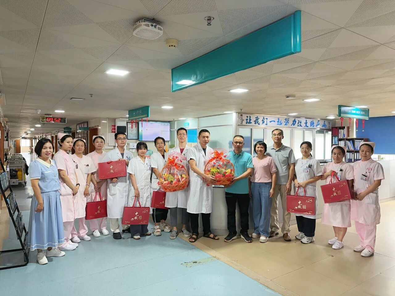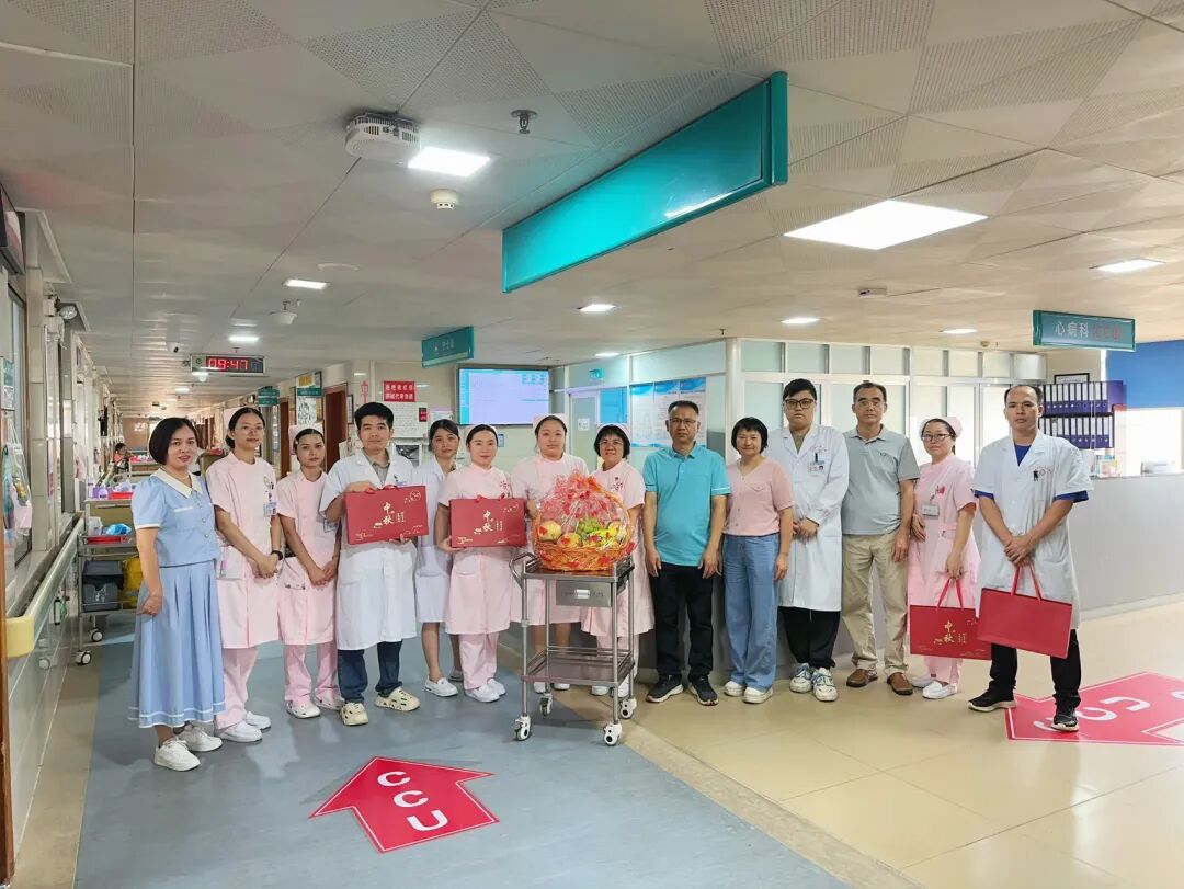10月6日中秋节当天上午,我院党委书记黄思石、院长朱家志带领慰问组,慰问了节日期间依然坚守在一线的医务人员,向他们送上月饼、水果等慰问品以及节日祝福。 每到一处,慰问组都与值班医务人员深入交流,向他们致以节日的祝福,对他们在万家团圆之时默默坚守岗位,“舍小家,为大家”的奉献精神表示赞美和感谢。院领导们勉励大家要继续发扬敬业精神,各司其职,确保节日期间的医疗安全与质量,为患者的生命健康保驾护航。值班人员深受鼓舞,纷纷表示将立足岗位,尽职尽责,为医院的发展贡献自己的力量。 无微不至的人文关怀,让大家充分感受到了医院大家庭的温暖。一样的月光,不一样的中秋,医务人员脸上都洋溢着幸福的笑容,感谢这份“温暖的节日祝福与问候”! 年年中秋,岁岁月明🌕 天上人间,共此良辰🐇 月光所至,万事胜意✨ ㊗️大家中秋节快乐!🥮
