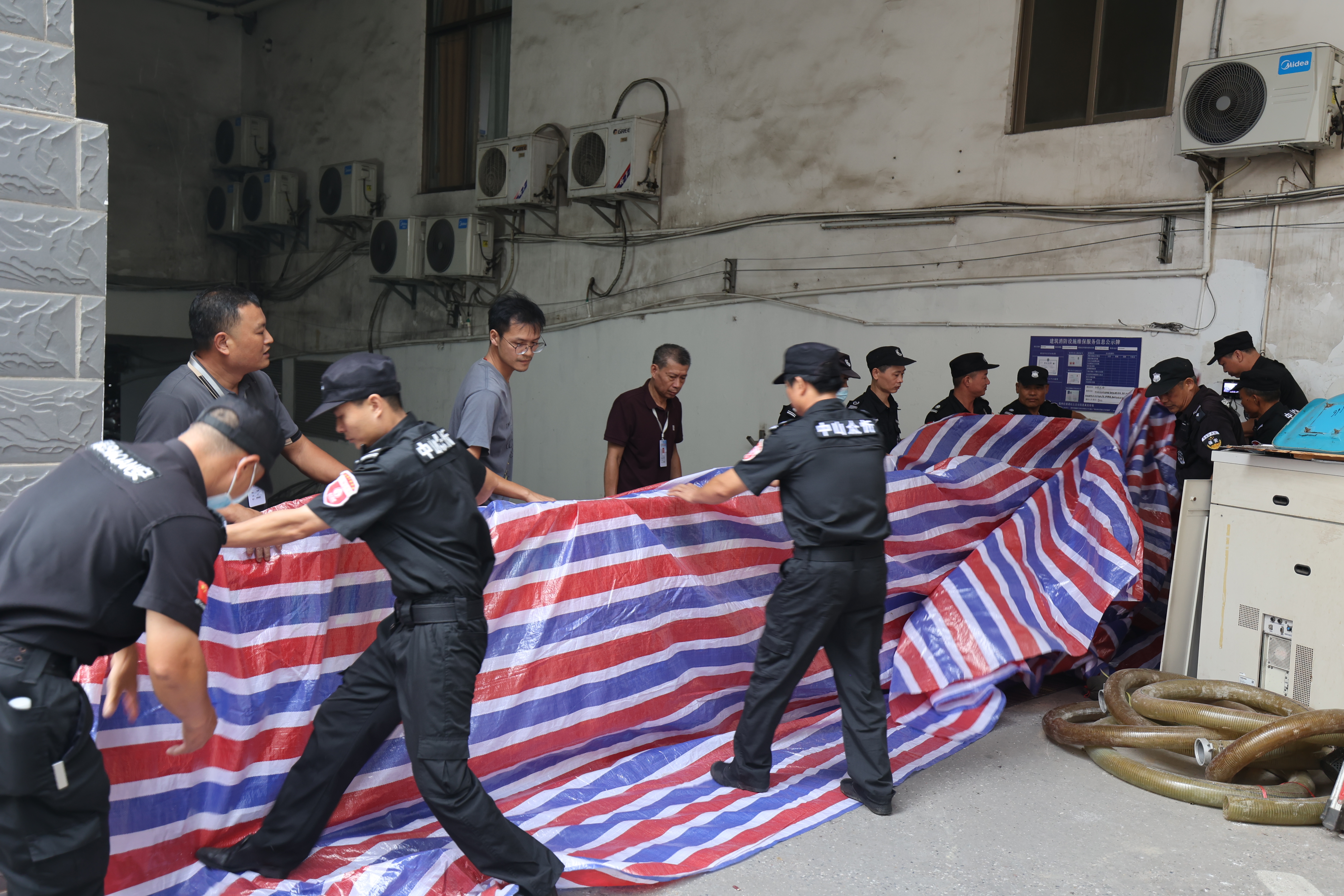 本次演练模拟持续强降雨导致医院地下车库进水的险情,相关部门迅速行动、密切配合,使用防水挡板、防汛沙袋阻断洪水,保障极端天气下医院的有序运营。