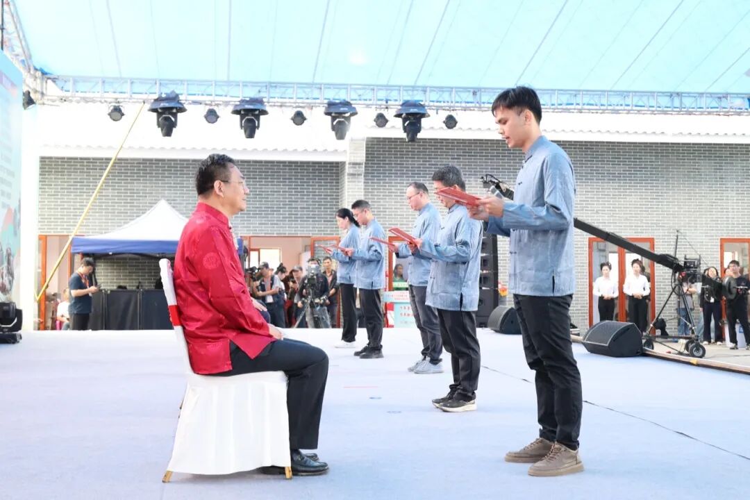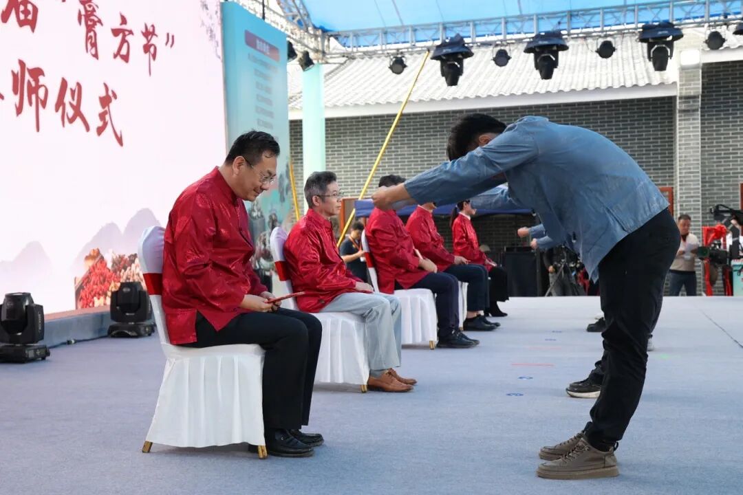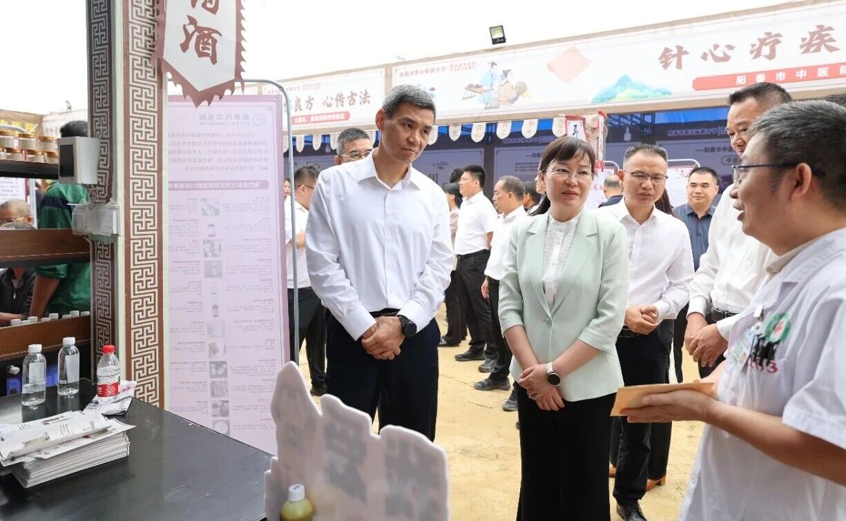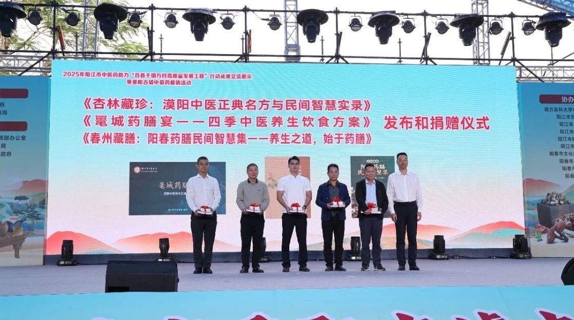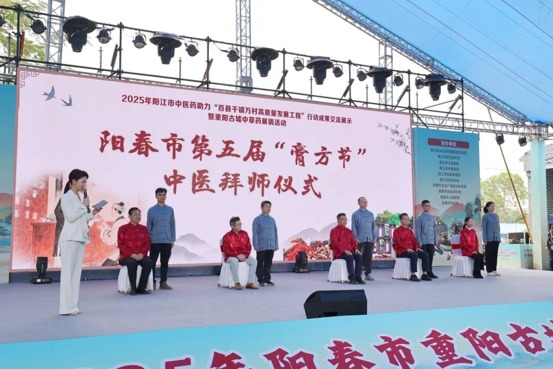 中医拜师仪式 师承教育是守正创新、培养新时代中医人才的关键路径。启动仪式现场,省级名中医袁少英、李勇、陈延、廖志山、胡向丹等专家与我院其师承弟子举行了中医拜师典礼,弟子们呈拜师帖和礼茶,行拜师礼,与老师缔结师徒情缘,青蓝同心,匠心传承。 捐赠书籍 由我院编撰整理的书籍《春州藏膳:阳春药膳民间智慧集一一养生之道,始于药膳》在启动仪式上正式发布,并与其他发布书籍一同被赠送给相关单位。书中不仅系统梳理了阳春地区代代相传的药膳配方,更融入了现代养生理念与科学解读,既让古老的民间智慧得以留存,也为大众提供了可落地、可实践的健康生活指南。 八段锦表演 仪式最后,我院医护人员进行了八段锦宣教活动,带领现场观众学习八段锦动作,展示其强身健体、调理身心的功效,体验其效果。 活动现场,广东省中医药局党组成员、副局长刘涛,阳江市副市长柯燕,阳春市副市长蓝瑜带队到我院活动摊位视察我院中医药事业发展情况及骨伤科、皮肤科和适宜技术推广中心建设发展情况,并对我院中医药传承创新工作取得的成绩给予了高度评价。 活动的开展,受到了广大群众的一致好评。下一步,我院将继续开展形式多样的健康服务活动,为健康阳春贡献更大的力量。