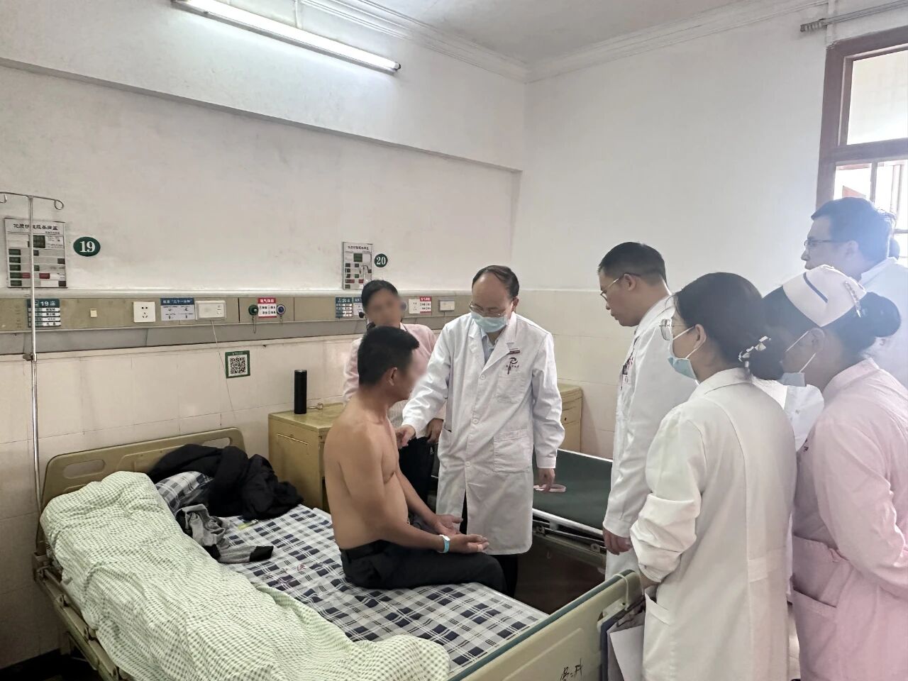 与此同时,一场疑难病例讨论与教学查房在我院骨伤科、肿瘤科生动展开。骨伤科主任李具宝、肿瘤中心主任医师陈继跃两位专家深入临床一线,与我院医护团队就实际疑难病例进行了深入分析和教学指导。这种“床边教学”模式,不仅为患者提供了更优的诊疗方案,更通过面对面的指导,有效促进了我院专科诊疗水平的提升和临床思维的拓展。