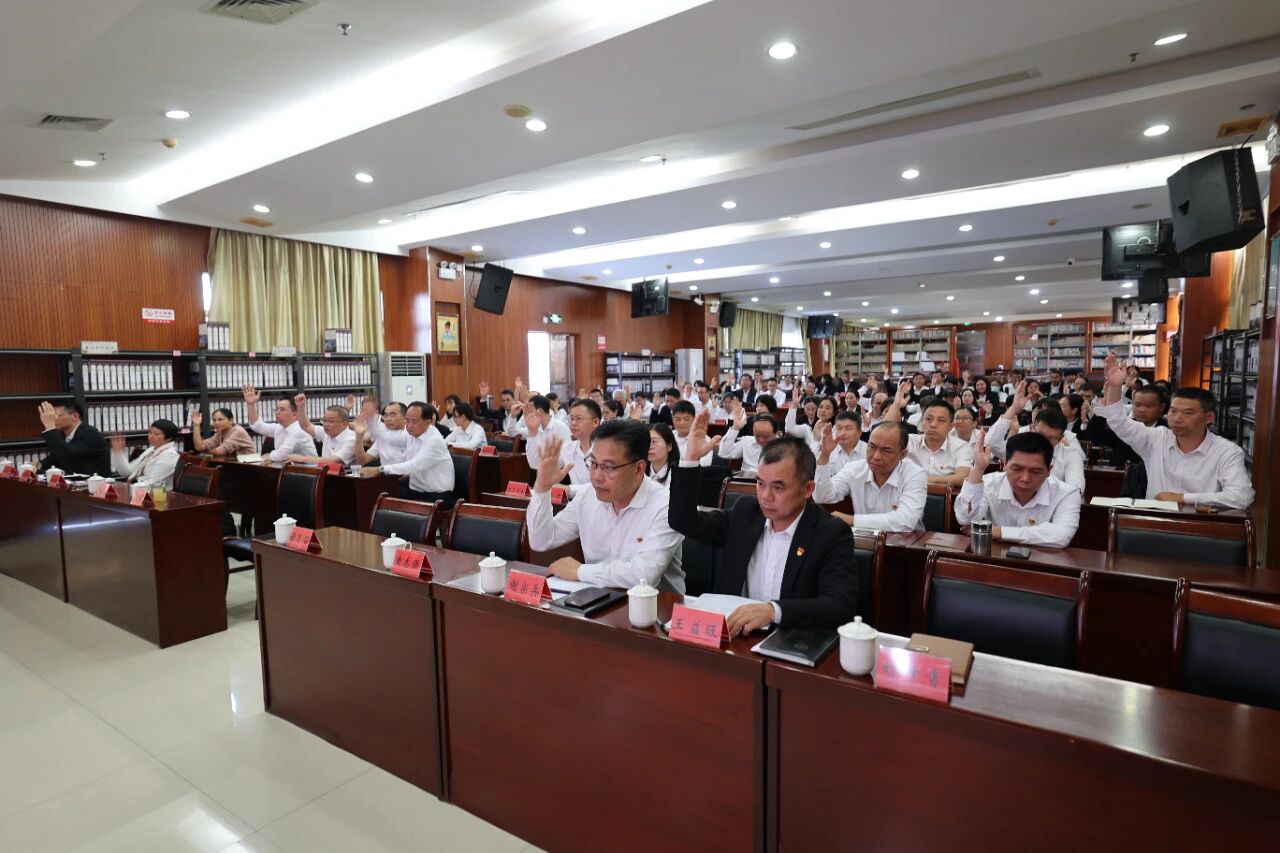 ▲与会代表举手表决通过《阳春市中医院管理方案》(含薪酬分配方案)