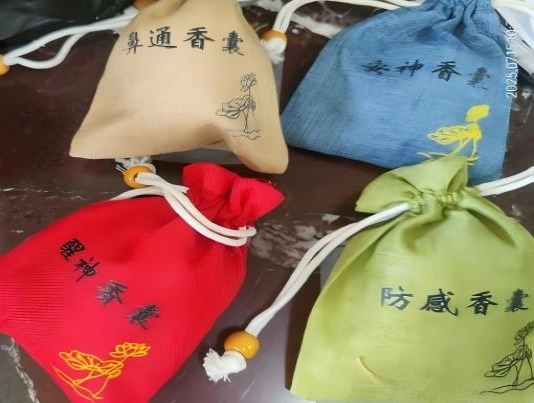 精心调配的香囊,可有效驱蚊、防虫、安神、防疫、通鼻、防感等多种用途。挂于床头、书桌、门口或随身佩戴,让淡淡草香陪伴患者休憩、学习、工作、漫步——既清新怡人,又安心防护。让这个冬天,不再被蚊虫、疫厉、失眠等打扰,用自然的方式守护健康。这不仅是一场活动,更是一场与传统文化的亲密对话。通过佩戴香囊,让患者会感受到中医药的温度与生命力——原来草木之间,也有深情;原来防病祛邪,也可以如此诗意。
