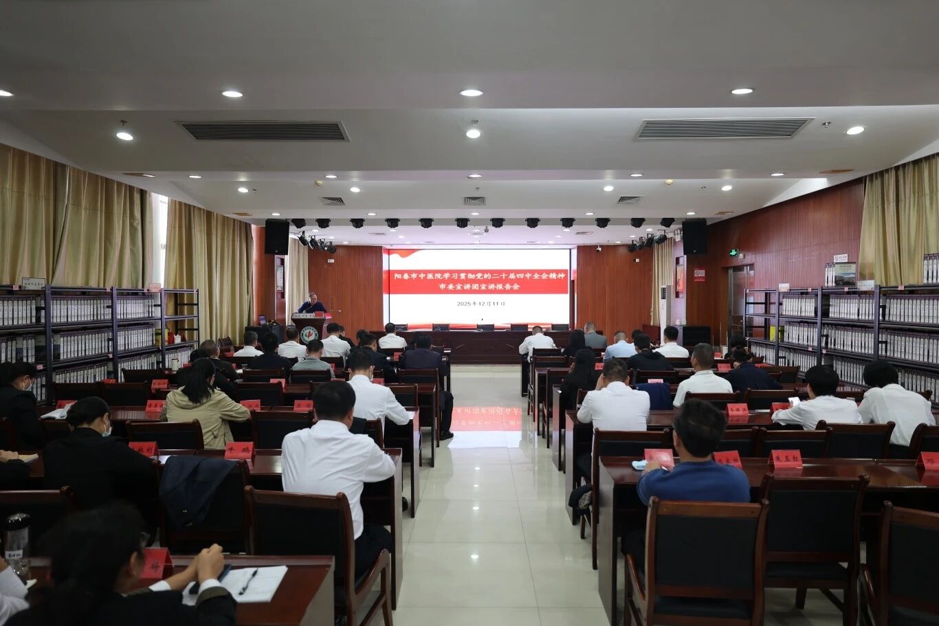 会议强调,一要吃透精神实质,要坚持党对公立医院的全面领导,把 “两个维护” 融入医疗服务各环节,严格执行医院下发的《阳春市中医院“党建引领,融合发展”实施方案》的要求,党支部书记主动到支部所覆盖科室传达并深入学习,全院上下要深刻领会全会精神实质,准确把握核心要义,切实把思想和行动统一到党中央决策部署上来,以高度的政治责任感和历史使命感,推动医院各项事业再上新台阶。二要坚守为民初心,将全会精神融入诊疗服务、学科建设等具体工作,推动名老中医经验传承与现代科技融合,以新质生产力赋能学科发展,并不断优化就医流程、提升服务质效,让中医药服务更惠民便民。三要严守廉洁底线,把学习成效转化为廉洁行医的实际行动,把全会精神转化为干事创业动能,以“中医龙头医院”实效为群众健康保驾护航,奋力书写阳春中医药事业高质量发展新篇章。