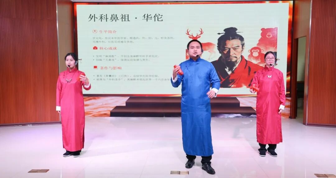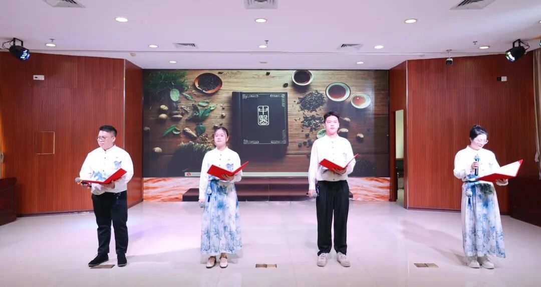 除了振奋人心的表彰外,各党支部精心编排的文艺节目更是为活动增添了浓墨重彩的一笔,表演者们以多样的形式诠释岐黄文化,展现我院职工的别样风采,让此次活动成为一场兼具文化底蕴与青春活力的视听盛宴。 活动在第十党支部带来的舞蹈《岐黄之韵》中拉开帷幕,舞者们以优美的舞姿演绎岐黄文化的源远流长,将中医的古韵与美感展现得淋漓尽致;第十二党支部的诗朗诵《岐黄礼赞》,字字铿锵、句句深情,歌颂着中医人的坚守与传承,抒发着对岐黄医术的崇敬与热爱;第三、第五党支部联袂带来的情景剧《传岐黄医术、承精诚医德》,以生动的剧情再现古代中医传承与现代中医临床诊疗日常,诠释了 “大医精诚” 的医者初心;第一、第三、第七、第八党支部的迎春快板《华夏医宗耀古今》,节奏明快、朗朗上口,展现华夏医宗风采;第二、第四党支部的小品《中药排名赛》创意有趣,以诙谐方式普及中药知识,让大家在欢乐中了解中医药魅力;活动最后,第六、九、十一党支部带来大合唱《杏林满漠阳》,歌声悠扬、气势恢宏,唱出春中医人守护阳春百姓健康的初心使命。