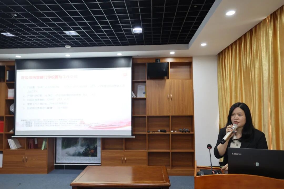 肺病科护士长韦洪媚围绕科室肺功能检查工作开展情况进行详细介绍。她结合临床实际,分享了科室在肺功能检查规范化操作、患者指导、质量控制等方面的实践经验。