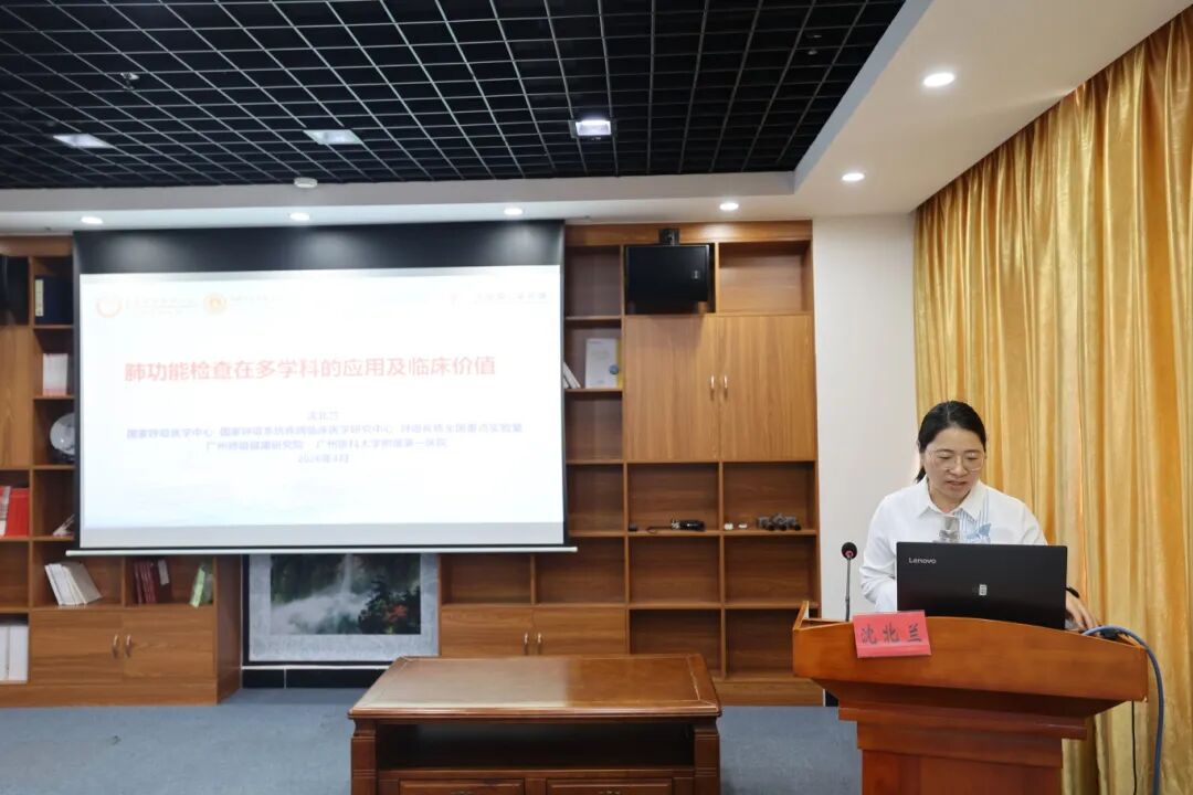 本次培训的核心环节,由特邀专家广州医科大学附属第一医院沈北兰教授带来《肺功能检查在多学科的应用及临床价值》专题授课。沈北兰教授结合自身丰富的临床经验与前沿学术理念,围绕肺功能检查原理与项目、肺功能检查的临床应用、肺功能检查的国家政策导向和现状、肺功能检查在慢阻肺病的临床应用与实践四个核心方面展开系统讲解,内容兼具专业性与实用性,层层深入、干货满满。