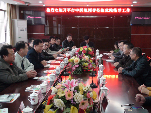 1月8日上午,开平市中医院陈祖彦院长带领该院领导班子、相关科室负责人及业务骨干一行15人来我院参观指导。我院李学应院长率院领导班子成员及相关科室负责人与来访客人进行了友好的座谈和参观交流。