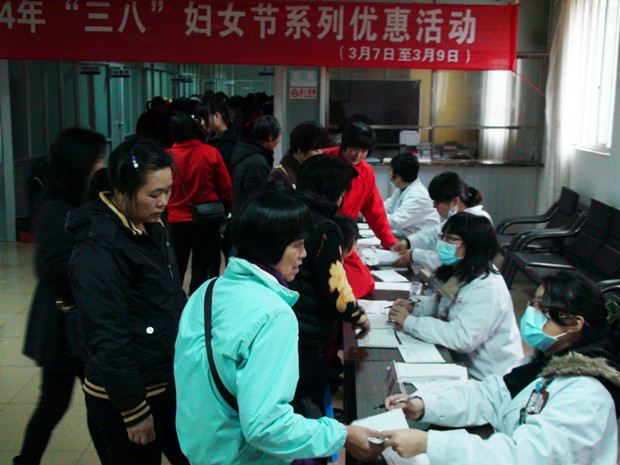 为深入贯彻落实党的群众路线教育实践活动精神,关爱妇女卫生健康,提高广大妇女健康水平,3月7日至9日,我院开展了庆“三八”妇女节系列优惠活动,为女性朋友送上节日健康大礼。而这已经是我院连续第六年在“三八”妇女节期间开展此项活动,实实在在为广大群众办了实事、办了好事。