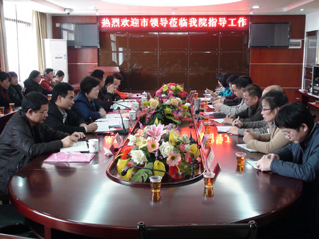 在调研座谈会上,李学应院长对医院人员结构、业务规模、专科建设、科研教学以及今年工作计划等方面工作进行了汇报。他指出,近年来在市委、市政府和上级卫生行政主管部门的正确领导及大力支持下医院得到了快速发展,专科优势突出,建成了一批国家、省、市级中医特色专科群;加强了与高等医学院校的合作,加快了医院人才培养,方便了我市群众就诊;教学科研工作走在本地前列,科教发展战略取得了较好的成效;医院信息化建设在全市卫生系统中率先基本完成;送医送药下乡义诊等便民惠民措施坚持不懈开展,赢得社会肯定;基础设施逐步完善,中医药文化氛围浓厚。今年,医院将围绕党的群众路线教育实践活动,重点做好县级公立医院综合改革和二级甲等中医医院复审等工作,加快医院发展。同时围绕县级公立医院改革、二甲复审、经费投入、制剂室建设、建设用地等医院发展以及在发展过程中出现的问题提出了建议,希望市政府给予更多的投入和支持,加快中医强省、中医强市建设。