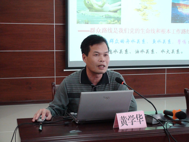 报告会上,黄团长以其深厚的理论素养,从“党的群众路线教育实践活动的重要性”、“群众路线的发展历程”、“群众路线的突出问题”以及“切实做好党的群众路线教育实践活动”等四个方面,用大量的史实、精辟的语言、独到的视角、深邃的思考,深入分析了马克思主义群众观的本质,并结合毛泽东、邓小平、江泽民、胡锦涛和习近平等党和国家领导人关于群众观的论述,对当前开展的党的群众路线教育实践活动进行了解析,深入浅出地阐述了改进工作作风,密切联系群众的重要意义和具体要求。