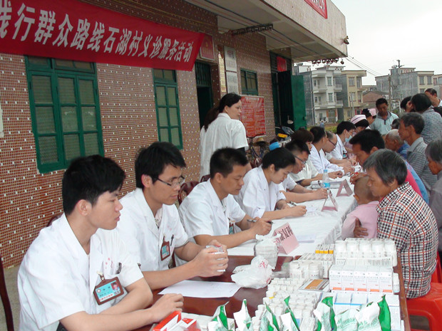 为践行党的群众路线教育实践活动,缓解农村地区老百姓“看病难,看病贵”问题,4月15日,我院精心组织了一支由内科、外科、中医科、骨伤科、风湿病科、康复科等19名专家及医护人员组成的医疗队伍,到春城石湖村参加由市卫计局和阳春市春城街道工委举办的“践行群众路线”义诊服务活动。