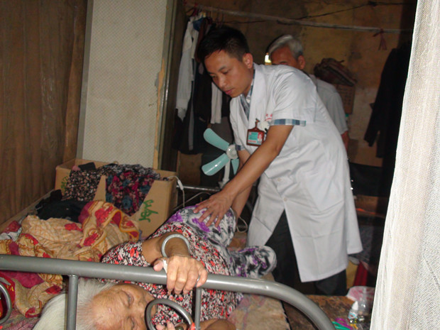 杨志芬医生到患者家中为患者进行身体检查
