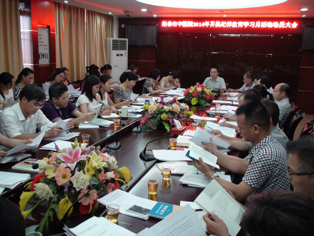 会上,李学应院长针对我院的实际,对开展纪律教育学习月活动作了整体部署,重点组织学习了习近平总书记系列重要讲话精神,特别是在党的十八届三中全会、十八届中央纪委三次全会、参加河北省委常委班子专题民主生活会、兰考县委常委扩大会议上的重要讲话精神和有关党纪条规以及中央纪委、省纪委编印的《违反中央八项规定精神案例剖析》、《反腐倡廉教育读本(2014)》等内容,要求全院干部弘扬清正廉洁、艰苦奋斗作风,增强纪律意识,牢记工作职责,坚决克服以权谋私、收受红包、收受回扣等行为,树立良好的医德医风,进一步提高思想认识,端正态度,以饱满的政治热情参与纪律教育学习月活动。