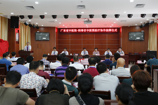 4月29日上午,“广东省中医院协作医院”及“广东省中医院普外科技术协作科室”签约挂牌仪式在我院隆重举行。广东省中医院陈达灿院长、张忠德副院长、医教处杨荣源处长、大外科主任谭志健教授,阳春市人民政府余秀坤副市长、市府办黄昌荣副主任,阳春市卫计局赖洪锦局长等领导出席了签约挂牌仪式。