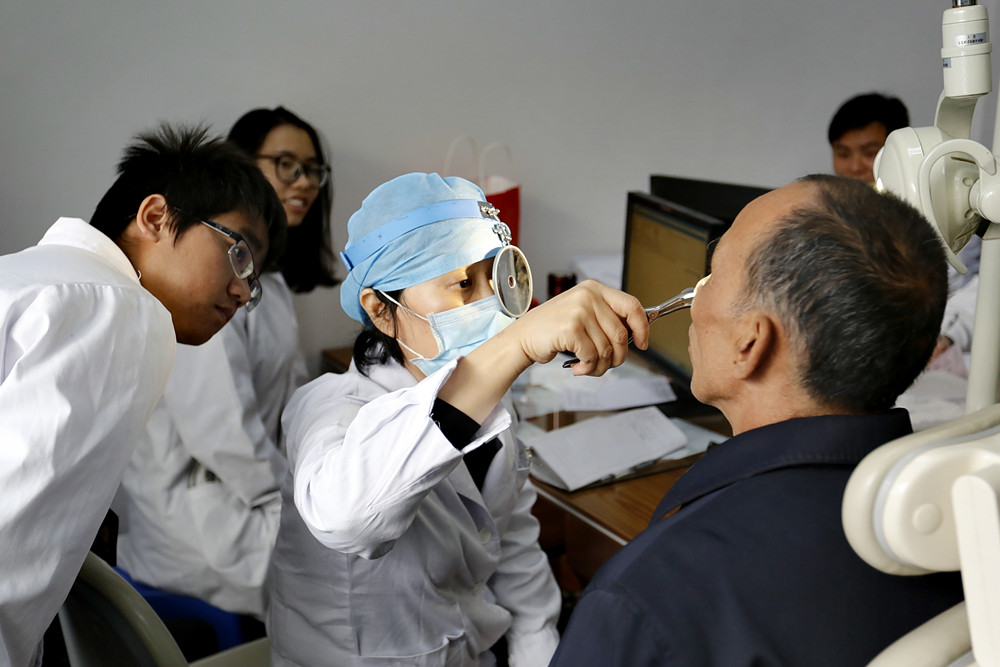 此次义诊规模大、规格高,医疗队由广州中医药大学第一附属医院耳鼻喉科主任阮岩教授、国家级名老中医王士贞教授,眼科负责人俞晓艺教授等近20名临床经验丰富的医护专家组成。义诊现场,慕名而来的患者早早赶来,诊室外人群涌动;诊室内专家们全身心投入到诊疗中,仔细询问,认真检查,耐心地为患者解疑释惑、望闻问切、诊疗开方,及时给予医学上的指导、建议和健康知识的普及。已经71岁高龄的王士贞教授不顾旅途劳累,和其他专家一起早早的来到义诊现场,投身于的忙碌的义诊之中,时而侧身倾听病情,时而检查把脉,态度和蔼可亲、看病仔细认真,充分彰显了医务工作者严谨的工作态度和高尚医德,令广大患者和医护人员肃然起敬,交口称赞。