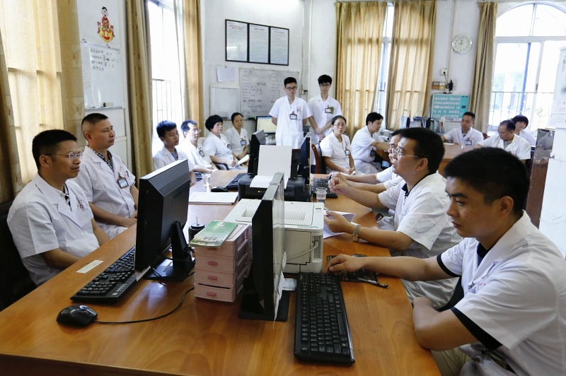 义诊期间,刘悦教授还到我院康复科进行查房、指导等活动,并与我院医务人员进行深入的交流。交流期间,刘悦教授与陈永雄院长进行密切的交谈,各科室负责人也进行了充分的学习。刘悦教授用自己的临床经验和管理经验给予我院医务人员详细的指导,提升了我院医务人员的理论水平和技术水平,促进了我院医疗水平的提升。