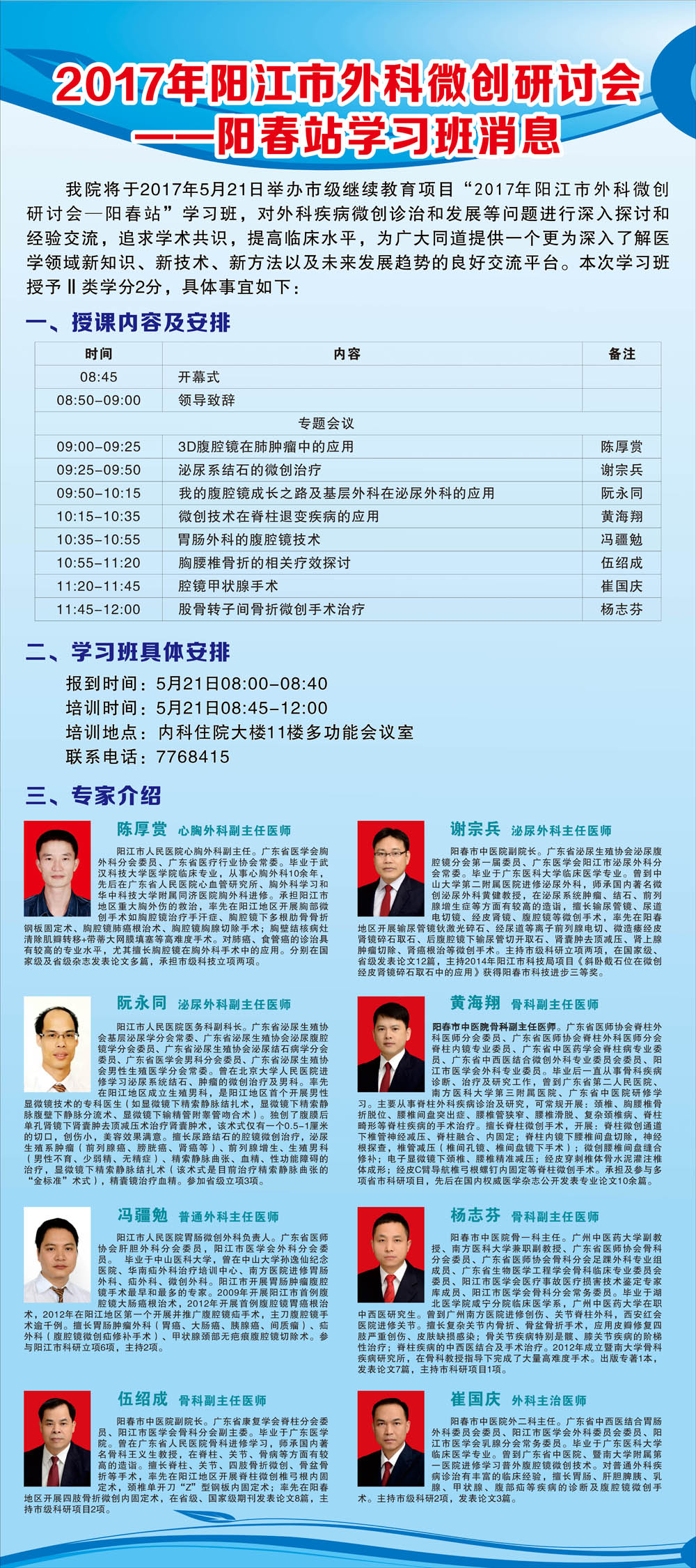 2017年阳江市外科微创研讨会——阳春站学习班消息