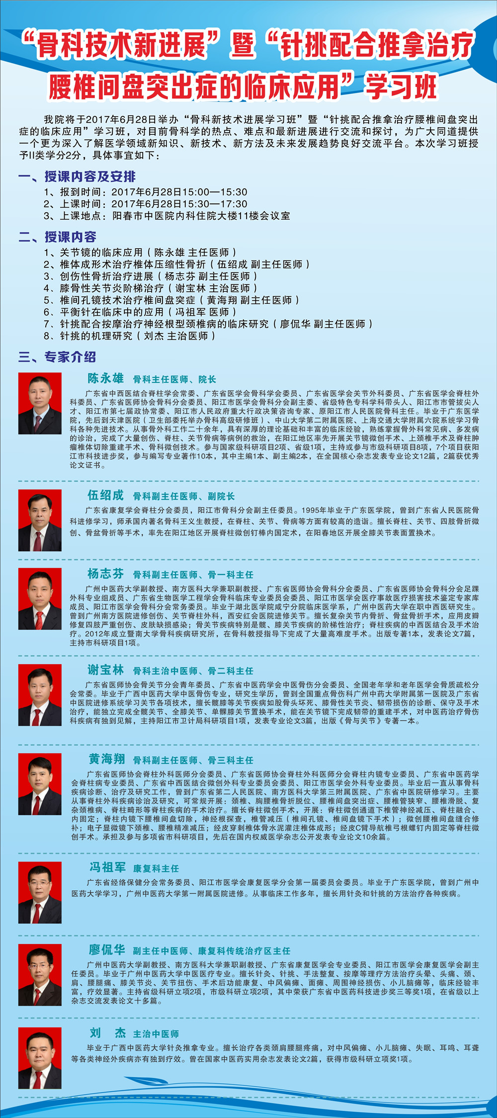 “骨科新技术进展”暨“针挑配合推拿治疗腰椎间盘突出症的临床应用”学习班