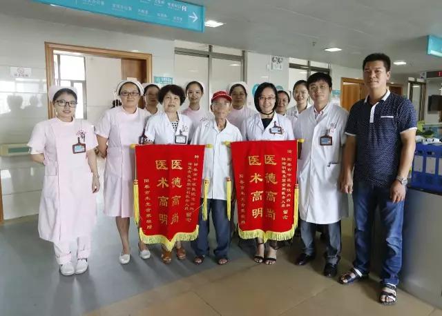据了解,这位老伯姓朱,是一名革命老战士,一直以来都在我院急诊科就诊,梁夏青医师为其主治医师,因其细心照料,患者病情尚稳定。8月4日,朱老伯突然出现胃纳差、全身乏力,难以行走等症状,故到我院就诊。梁夏青医师了解病情后送至我院内四科住院治疗,住院期间,管床医师陈浩明采用中西医结合治疗方法,尤其使用中药煲汤方法,使患者病情逐渐好转,到出院前夕,患者已胃纳转佳,可独自行走活动。朱老伯对我院医务人员的精准治疗及精心护理非常感激,故亲自到我院两个科室送上锦旗以表示感谢。
