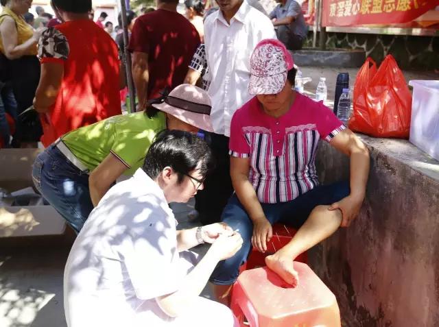 义诊当天,我院医疗志愿服务队忍受着高温为群众诊治,开出处方,耐心解答疾病防治与健康知识咨询,指导群众用药,免费为群众查体温、测血压、听心肺、针灸,并为群众免费发放药品。活动现场气氛热烈,前来应诊的群众络绎不绝,我院医护人员精湛的医疗技术和热情的服务赢得了当地群众的一致好评,义诊活动一直从上午9点持续到下午1点钟左右。据统计,活动共接待就诊咨询村民500多人次,发放健康科普资料1000余份,赠送药品价值19000多元。