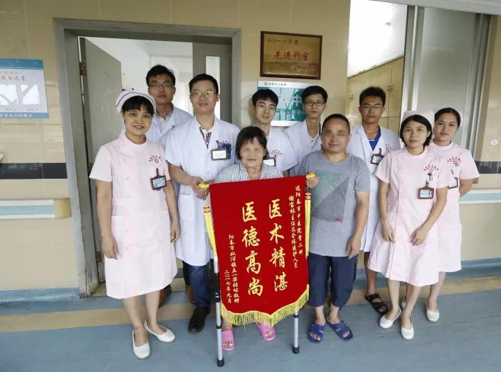 梁奶奶及其家属将锦旗赠送给骨二科医务人员