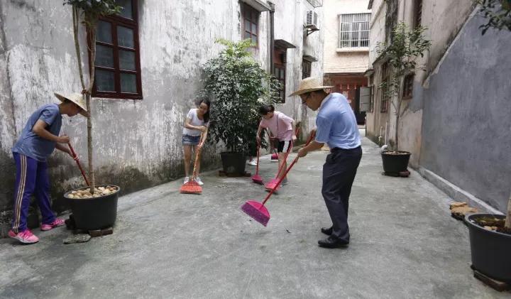 我院干部职工在巷中扫地