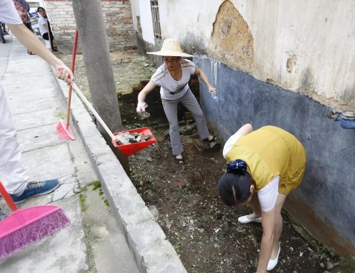 我院干部职工在小巷上认真清扫