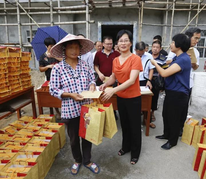 莫彩燕副书记将月饼送到贫困户手上