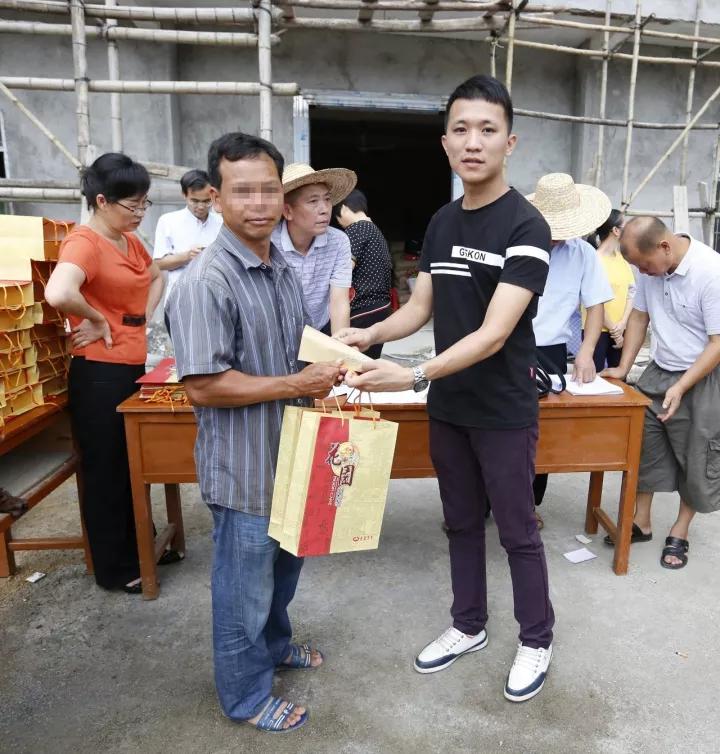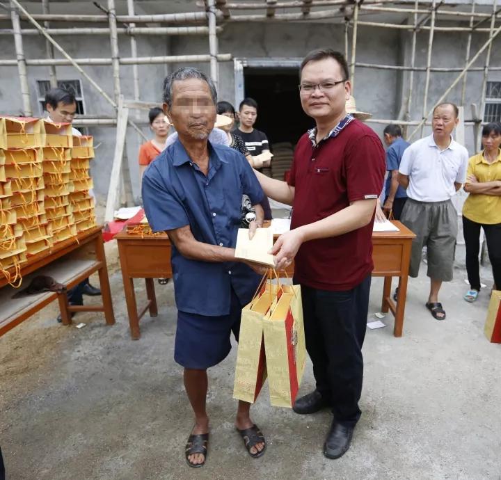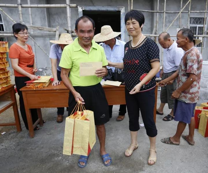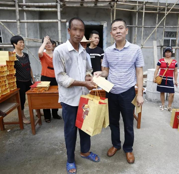 扶贫工作组成员、驻村干部林信达为贫困户送来月饼与慰问金