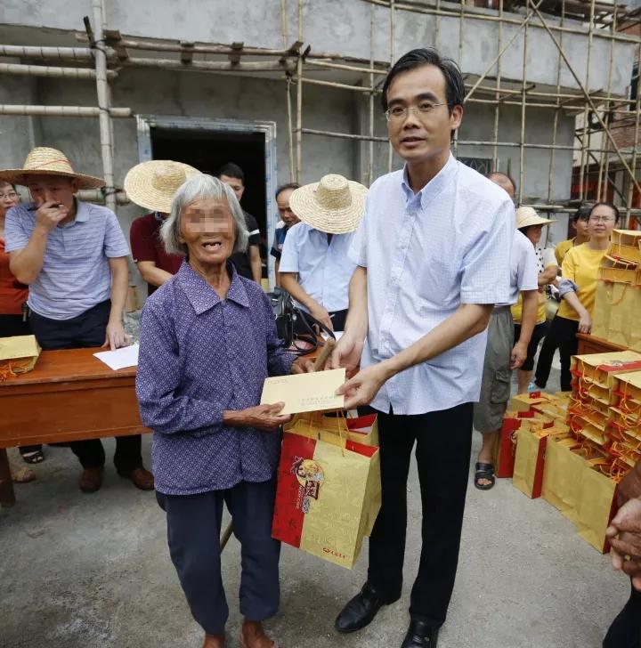 扶贫工作组成员、院办公室主任林茂儒为贫困户送来月饼与慰问金