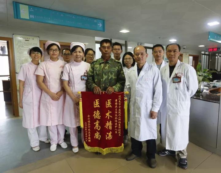 近日,一位患者家属将一面印有“医术精湛,医德高尚”的锦旗亲手送到外二科医务人员手上,以表达他的不尽的感激之情。