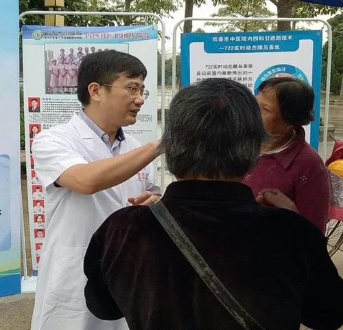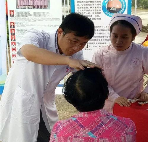 谢日升副院长为群众检查及宣讲糖尿病健康知识