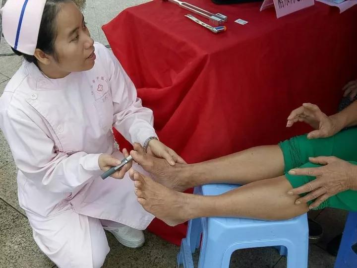我院医务人员为糖尿病患者进行糖尿病足筛查