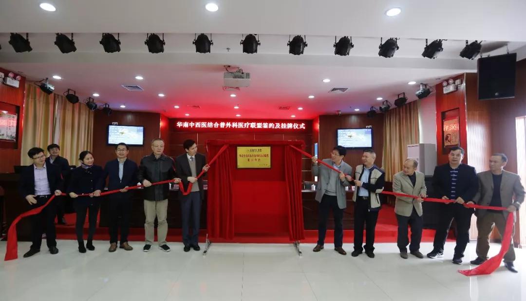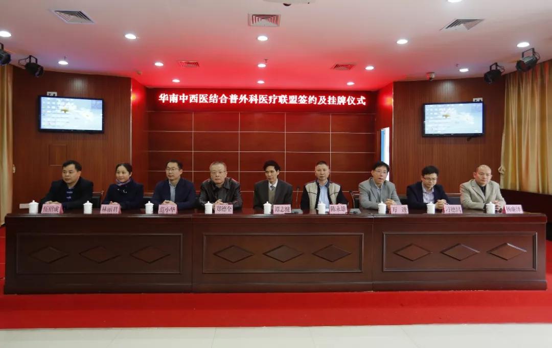 12月17日,为了进一步增强我院医疗水平,让广大群众足不出市就可以享受到省级专家的医疗服务,我院与华南中西医结合普外科医疗联盟在医院内科住院大楼11楼会议室举行签约及挂牌仪式,正式成为华南中西医结合普外科医疗联盟的一员,当天还开展了学术论坛及大型义诊活动。