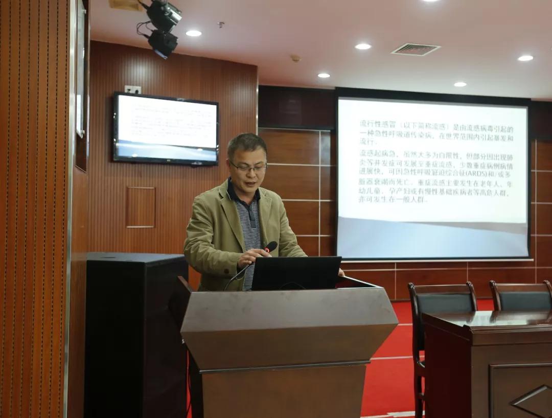 随后,急诊科陈雄主任结合科室流感临床诊疗方面的防治经验和体会,以及流感诊疗方案、预防控制、中医学诊治等知识,讲解了流感的临床特征、流行病学、诊断标准、治疗、消毒隔离和个人防护等知识。