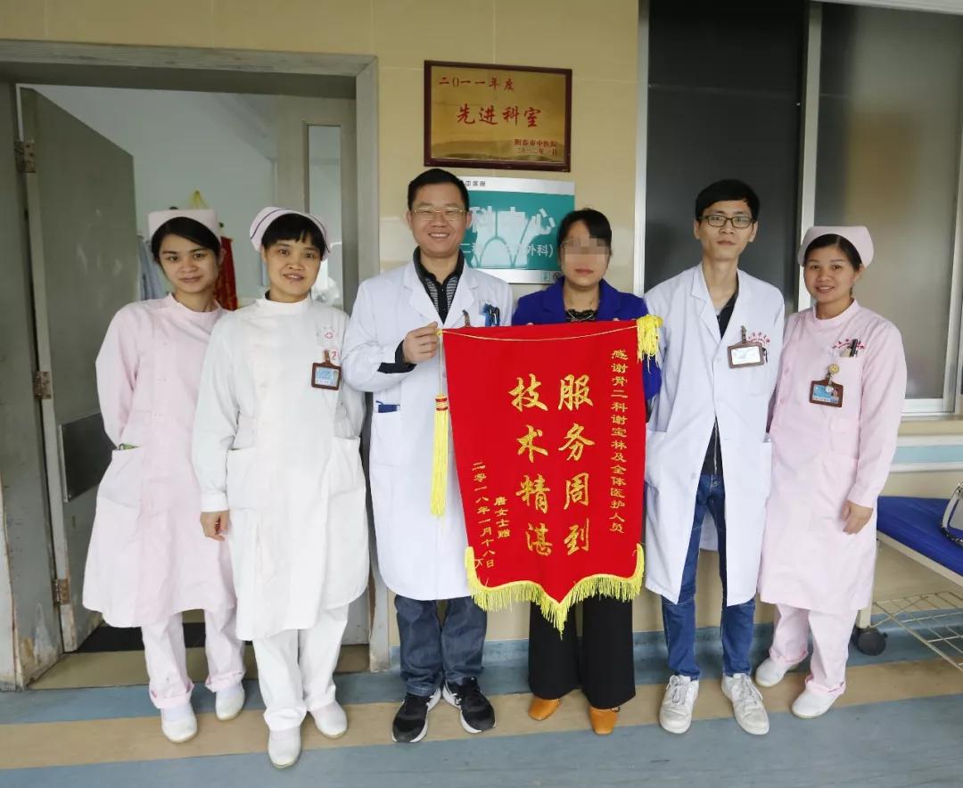据了解,送锦旗的患者1月前出现左小腿肿痛,多次在私人诊所及我市某医院进行治疗,效果不明显。半月前患者慕名来我院找骨二科主任谢宝林就诊,完善相关检查后诊断左小腿肿物,骨二科科主任谢宝林及医务人员通过讨论,建议患者行左小腿肿物切除术,患者及家属考虑后同意手术。手法非常成功,在骨二科医护人员精心照顾下,现患者病情痊愈,恢复正常生活。患者及家属对治疗效果及骨二科全体医护人员的优质服务非常满意,特送来锦旗以感谢谢宝林科主任及骨二科全体医护人员。