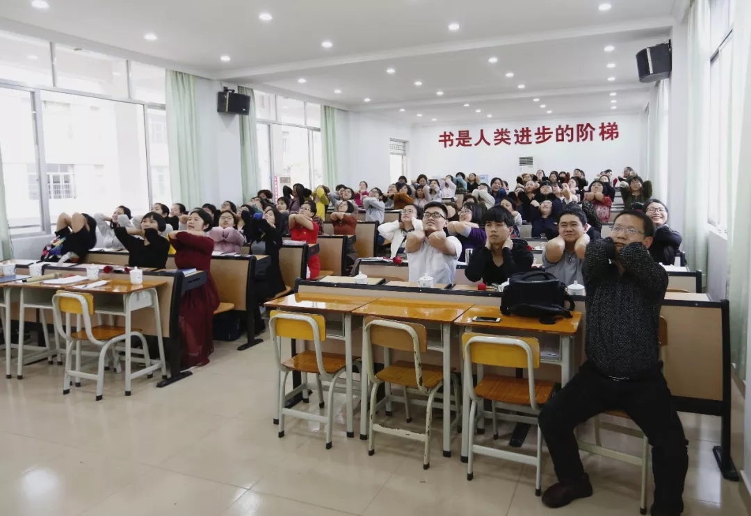 云凌小学教职工纷纷在讲座上学习保护颈椎动作