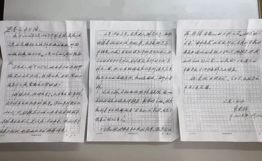 患者余某是台山人,今年73岁,因腰椎压迫神经于3月13日下午慕名来到我院治疗。当天余某初来我院,不知道就诊流程,客服中心导诊人员陈静茹、赖春伶看见后,主动上前询问患者病症、要看哪个科室等,并在患者得知要看的医生外出后,帮助患者联系骨三科的黄主任,为患者预约诊断时间。考虑到患者行动不便,陈静茹、赖春伶还暖心地为患者推来轮椅,用轮椅送患者去骨三科。热情的服务使患者感到无比的温暖与关怀,患者非常感激,特在几天后将这封感激信送来我院。